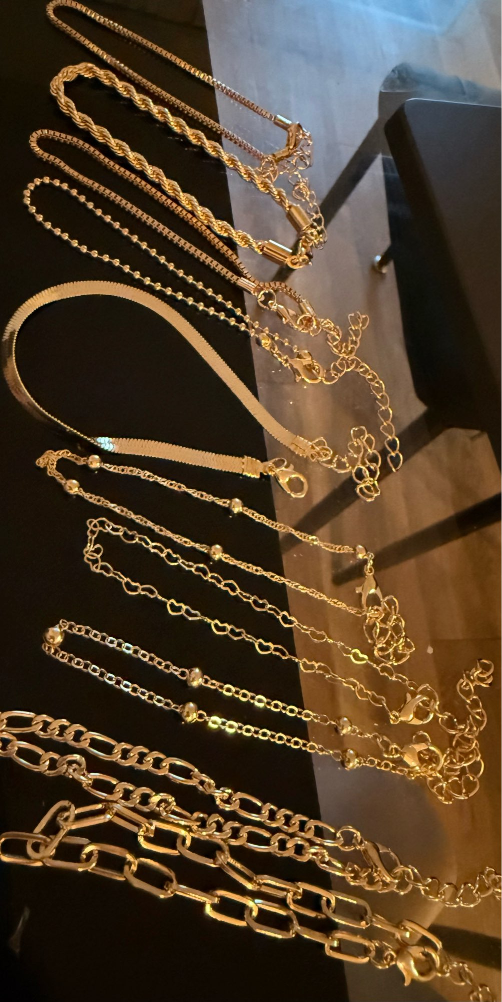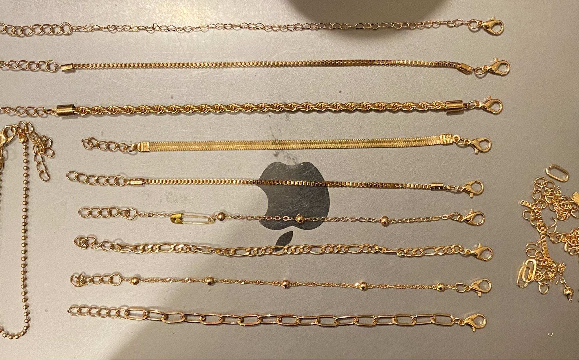 So cute !!!!! I love almost all of the designs and to get this much for so little is amazing !!! I haven’t worn it for long yet but since it’s cheap I don’t expect the quality to be great and it’ll probably tarnish and rot but that’s okay ^^ only issue would be that they run really large and my wrist is quite small, about 14cm and I like it tight and not loose so I had to adjust all the ones I wanted to wear… luckily I have some jewellery tools so it can be done otherwise it’s hard without them :( also the gold safety pin is something I added myself because I accidentally cut one bracelet too small haha, but it still looks cute :) Also another issue is that the clasp on the bracelet that’s not lined up is stuck and I cannot open it at all … another bracelet was also like this but the clasp was just stiff so I could open it but this I just cannot …… it’s okay though, I don’t really like that bracelet so I’m not too upset !!